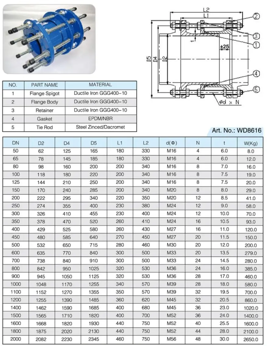 Flangia di tipo rigido per giunto di smontaggio forata a PN16