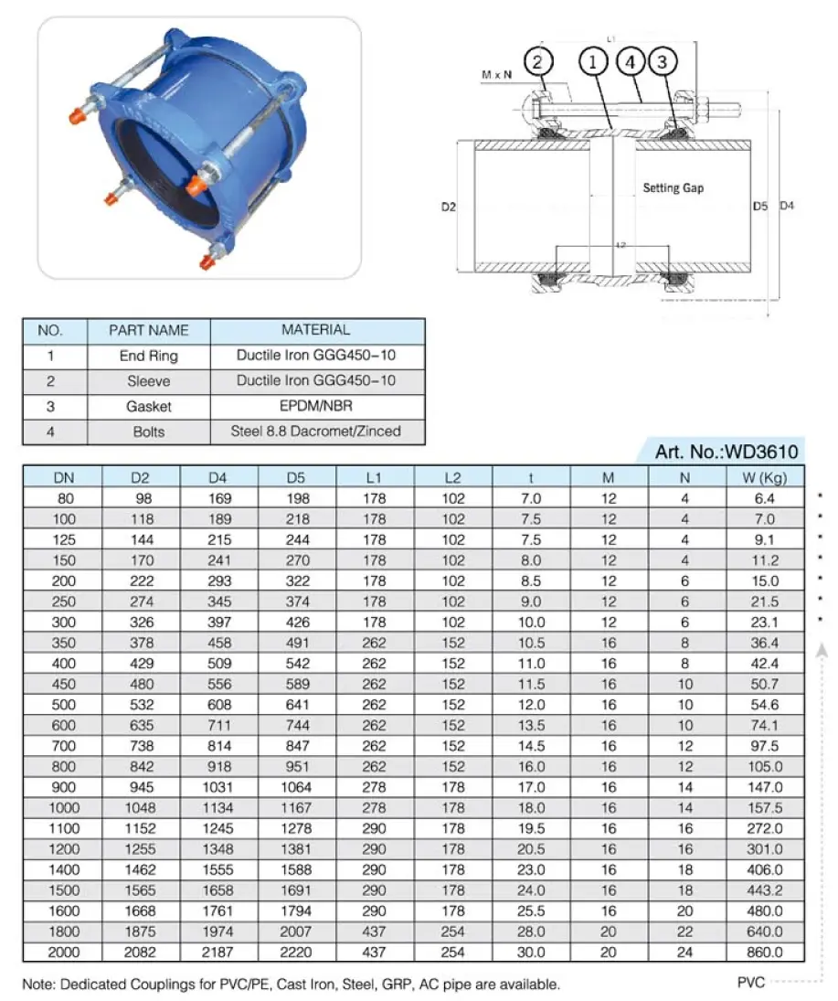 • Giunto flessibile per tubi in ghisa sferoidale (dedicato)Giunto flessibile per tubi in ghisa sferoidale (dedicato)